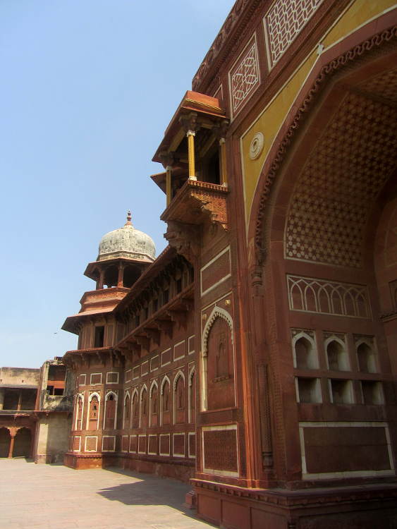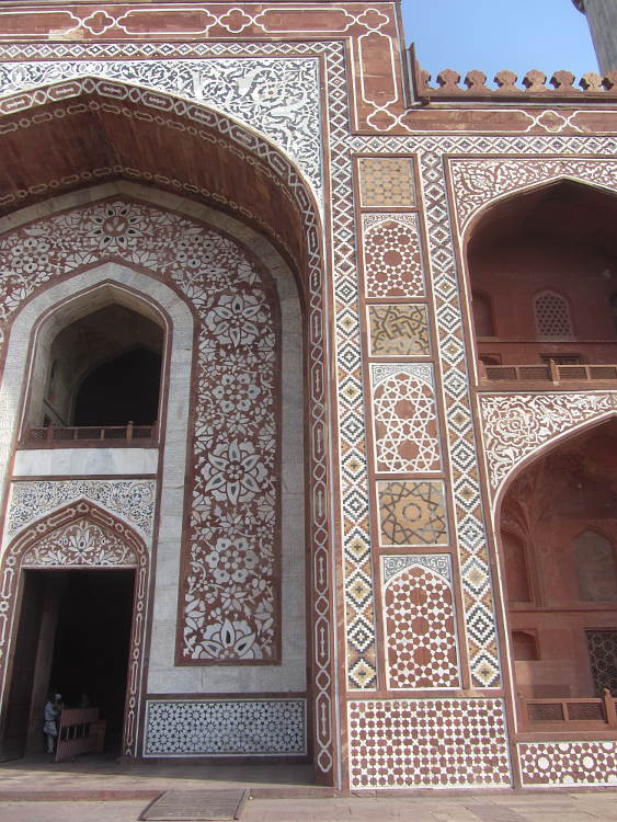 After the big Taj comes the baby Taj, or rather the Tomb of I'timād-ud-Daulah, who was the grandfather of Mumtaz Mahal of Taj Mahal fame. My first impressions (after the Taj Mahal) were that it was rather ugly. The proportions were just a bit too squat. However, on closer inspection, the coloured mosaics, inlay and delicate lattice work give it a totally different appeal and is well worth visiting.