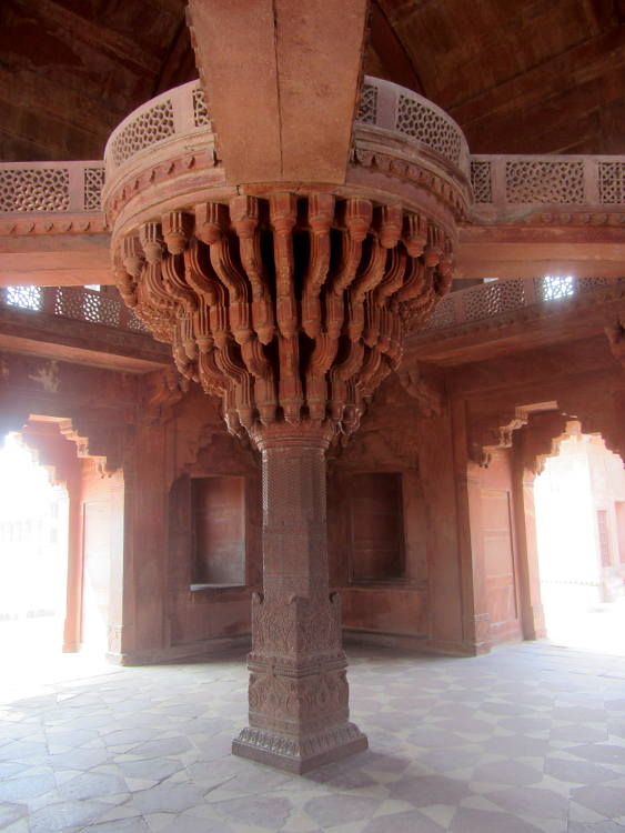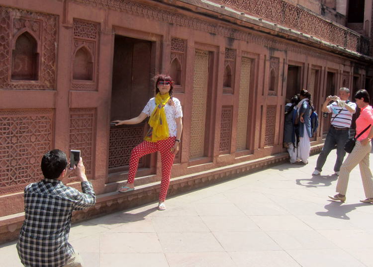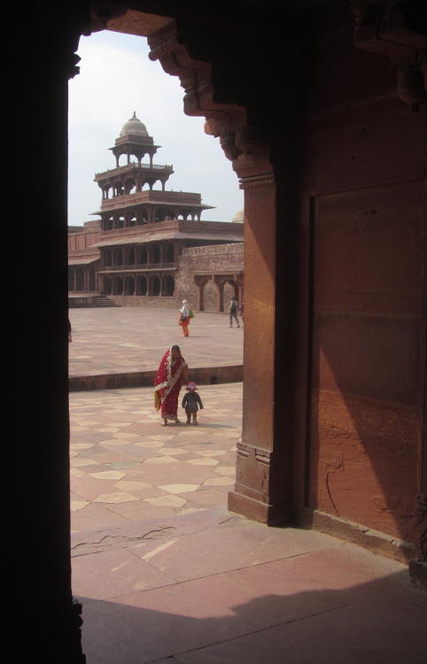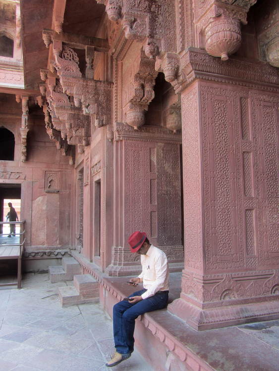 Then I went into the Palace buildings proper, for which I needed a ticket (500Rs) but no skirt. I've read many reviews of the place on the Internet and they all gush about this lost-in-time, almost perfect, World Heritage Site city, but I think I had seen so much Mogul architecture over the past month that it was like, yeah, it's pretty good but no more. As I mentioned before I much prefer the single edifices situated in stunning gardens. Give me the mausoleums anytime. I think the problem I have is that I see the building but I think, "What was it used for? What did it look like when it was used? Where's the furniture?!" In fact no one seemed to know the function of any of the buildings. I have to say though that it was large enough to easily accommodate the tourists and I did enjoy wandering around all the multifaceted buildings with their exquisite carvings. An impressive sight. And apparently as it was abandoned not long after it was built, that is why it is still in pristine condition.