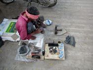 Got the bus from Udaipur to Chittorgarh no problem. Semi-deluxe, that's a laugh but I got a seat. The journey was pretty boring, just views of major road works everywhere and dust. The station in Chittorgarh is across the river from the old town so I managed to avoid the trishaw drivers and just walked across the bridge observing the hill fort in the distance. Found my designated hotel - Hotel Ganesh pretty easily. Their website describes it as the best hotel in Chittorgarh. Hmm, hardly. I decide against the "Femily delux AC room suite" and just go for a normal delux room which is adequate. The boss, Mr Kailash, tells me he has specially upgraded me at no extra price. The shower is cold but hot water provided by the bucket. So that is delux. I headed out into town which was better than first impressions. Lots of activity, an interesting spice market and quite a large muslim population. Town is quite flat but the nearer you get to the start of the hill, where the fort is, the older the buildings and narrower the lanes. Quite a few blue buildings here as well, like Jodhpur
