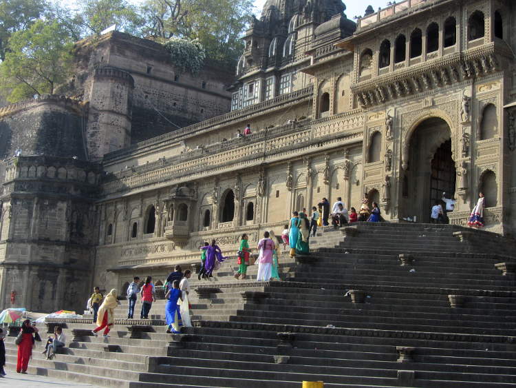 There is nothing much to do in Maheshwar so I spent most of my time just hanging out by the ghats watching the other tourists/pilgrims and often being asked to pose with them for a photograph. One motley bunch was especially interesting. All men, both young and old from Gujarat. They said they were holy men (sadhus) on a pilgrimage and they were very interested in whether I smoked narcotics. They also wanted money off me but it soon became clear they were not begging, they just wanted European coins. I'm not sure why.