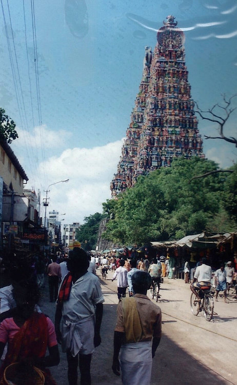My diary notes, "Welcome back to India!". After chilling at the beach, I was once again assaulted by the noise, smell and general hubbub of life in India. Not only were the senses assaulted though, I felt under seige myself, from various various rickshaw wallahs and beggars. I noted that it was a shame I didn't take my camera to the temple in the heart of town, the famous Madurai Meenakshi Amman Temple because it was absolutely amazing. Like stepping back in time. The temple itself is home to many dark corridors and ancient columns, pagan shrines, flickering candles and colourful devotees. I was also fortunate enough to be blessed by the temple elephant. It's a shame that I didn't write more about this amazing city but I was soon off again. This time to Trichy and for the first time on the trip the weather turned a bit grim. Very humid and overcast with a few showers. I got to the Hotel Ashby in Trichy (144Rs). I noted that the shower didn't work (and recent reviews show no improvement in 20 years!) so moved to Ajanta across the road for a deal clinching hottish shower and 100Rs. I had yet another Masala Dhosa for supper - I seemed to be living on them at the time. I then went to Srirangam, and the Ranganathaswamy Temple, the largest functioning Hindu temple in the world. I was lucky in that it was festival time and I was in time to see the temple gates open and out came a huge temple chariot with what appeared to be baby Vishnu sitting proudly on top. Of course this is not verified as once again I don't have any pictures of the moment. I think at the time I must have been a bit India'd out, as my notes are quite sparse in spite of the obviously amazing places I was visiting. Home sick perhaps? Time for home then. My last few notes describe the train trip to Madras and then having a splash up lunch at the Connemarra Hotel and listening to Christmas carols sung by an old guy on the piano.