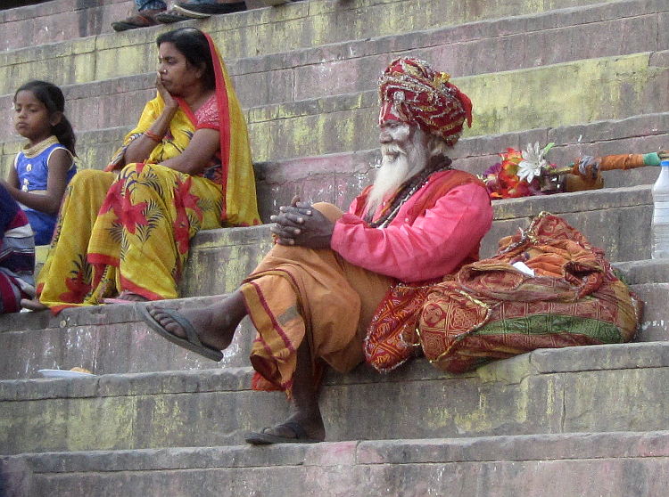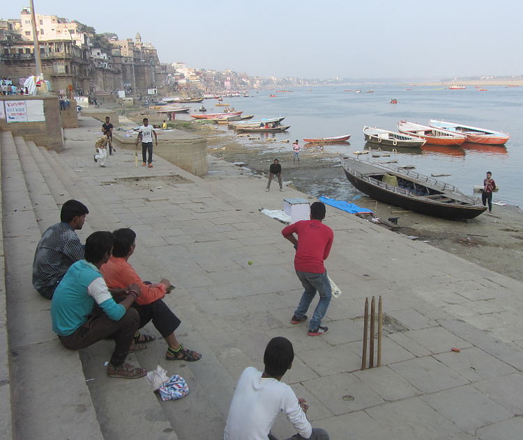 Varanasi is said to be one of the oldest cities in the world, one of the most sacred to Hindus and one of the most colourful and fascinating cities on Earth. That's some intro. But it is also one of the noisiest places on Earth. Once out of the train station I was assailed by an army of autorickshaw drivers and soon one of them was weaving me and the rickshaw in and out of some of the most crazy traffic in the world. But then I got to my hotel - The Shri Ganesh Palace, an oasis of calm in the cacophony that is Varanasi. However, refreshed with a cold drink I was soon out again to see what all the fuss was about and headed to the place for which Varanasi is most famous - the Ganges. Millions of Hindus come here every year believing that a wash in the holy waters will not only cleanse them of the sins of this life but all their previous lives as well. The embankment of the river is lined with over 100 ghats. These are simply stairs which you descend in order to reach the river. Although always busy, it is actually fairly quiet and peaceful and a great place for people watching. There are the bathers of course, but also kids playing cricket, holy men meditating, people washing their clothes, men fixing their boats and offering to take you across the river and and many people like me just hanging out.