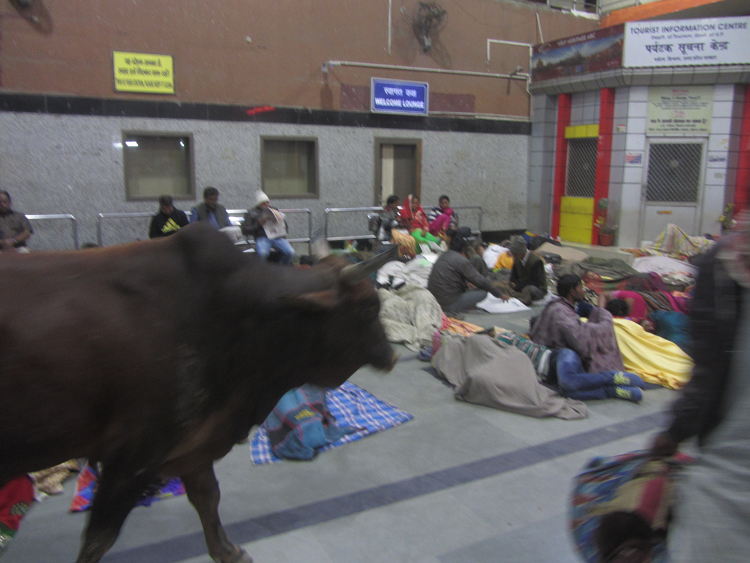 I can't wrap up a page on my site without a picture of my hotel room and some food (yet another thali) so here they are below. The next stage of my journey was also by train. This time an overnight trip south into Madyha Pradesh. When I got to the station, I was half expecting the main building to be full of people asleep on the floor but I wasn't expecting a cow to come strolling by. He walked straight past me and onto the platform!