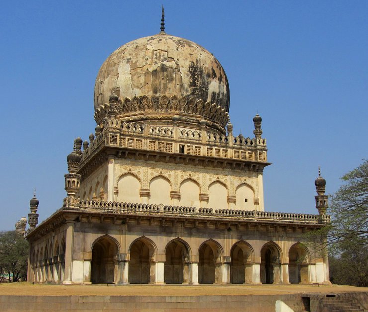 After Golconda, I took a short rickshaw ride to the Qutb Shahi tombs. These were a real highlight of the trip. Looking like a group of a half-dozen or so Taj Mahals in varying states of decay but without the well tended gardens or reflecting pools (or hordes of tourists). The comparison is valid as well, as they were built around the same time and by similar Moghul rulers. When I was there (Feb 2016), they had already started a large renovation project. One tomb was almost finished and glistened in white marble. I hope they don't renovate all of them to such a degree. I rather like the crumbling stucco look.