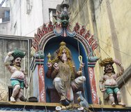 I've mentioned two famous churches of Chennai, but perhaps the most famous is San Thome Cathedral which is supposed to be the final resting place of St. Thomas the Apostle. Rather going against historical fact, St. Thomas was supposed to have brought christianity here in AD52 and was subsequently killed. Although most of St. Thomas is apparently in Italy, you can see a tiny bone fragment of his at the rather large tomb underneath the church. There is also a, presumably plaster, cast of him lying in state here along with a small museum. Near the church is the largest temple in Chennai, the Kapaleeshwar Temple. the temple is in the typical Dravidian style, common throughout the deep south of India, in that it has a huge gopuram, the ornate monumental tower, visible for miles around. Unfortunately there is a new law in Tamil Nadu banning temple entry to anyone wearing "western clothes" so I only got to see the outside.