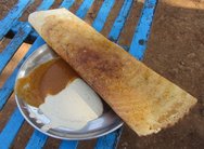 So these are the "sights" of Chennai but I have to say, the highlight, for me anyway, as it often is, has got to be the food. I've got a couple of photos below. The first one is of the food cart where I had my first Indian meal on this trip - a very tasty fish curry. Interestingly, the guy tried to give me a beef curry which I found surprising in this predominantly Hindu country but I found out that the states have their own laws on whether cows can be butchered and eaten. Ĩn Tamil Nadu it is supposed to be against the law (on the whole - it is apparently illegal to slaughter cows but not illegal to sell or consume the beef from cows). In any case, I learned later it was probably buffalo anyway - just like when I saw a beef butchers in Hyderabad. In Kolkata, however, it is perfectly legal to slaughter, sell and eat cow meat. The other photo is one of my favourite dishes - the Masala dhosa - a famous southern Indian staple and which I had for breakfast most days.