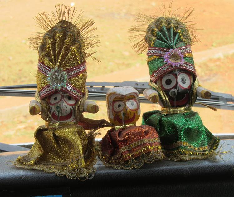 The other interesting trip to do from Puri was to Chilika Lake. Supposedly it is the second largest lagoon in the world and also the largest wintering ground for migratory birds in India. In the peak migratory season there are millions of birds there, but that was last month. However, I hoped to see the quite rare Irrawaddi dolphins. I noted that near my hotel, the main road was lined with hotels and restaurants but there were also loads of travel agents - most of them just a tiny office with a bloke sat behind a desk. The man I saw told me most people went for the private tours which were cheaper and non a/c but the government a/c bus was more likely to leave on time. For me it was a no brainer - a/c and on time wins hands down. I decided to go posh and booked on the official Odishan Tourist Development Corporation 1st class tour for the princely sum of 300Rs (£3). And true to his word, the following day we left on time at 7.15am. It was a small minibus with about a dozen or more tourists from various parts of India. The three groups I spoke to were from Kolkata, Mumbai and Bangalore. It was interesting in that they spoke to each other in a variety of languages including English as their native tongues would have been Bengali, Marathi and Kannada. They certainly didn't speak to each other exclusively in Hindi. I noticed that in common with most cars, buses and lorries in India, there were some local deities stuck on the dashboard and of course in Odisha, our driver had Lord Jagganath in its usual form as a triad.