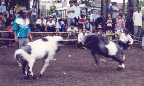 Ram fighting is popular around Bandung. Looks nasty but I never saw any of them badly injured