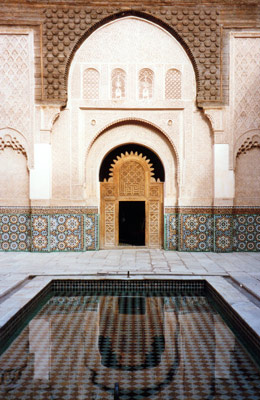 After getting dropped on on the outskirts of town, I took a taxi into the centre telling the driver to head for Hotel Ali. Initially I thought the taxi driver was playing silly buggers as he told me to get out with no hotel Ali in sight. He pointed me up the road and was off in a cloud of petrol fumes as soon as I had paid him off. Arriving in a strange town at night and having no idea where your hotel is is a bit unnerving but in this case the taxi driver couldn't have driven me to the hotel door as the centre of Marakesh has been pedestrianised.