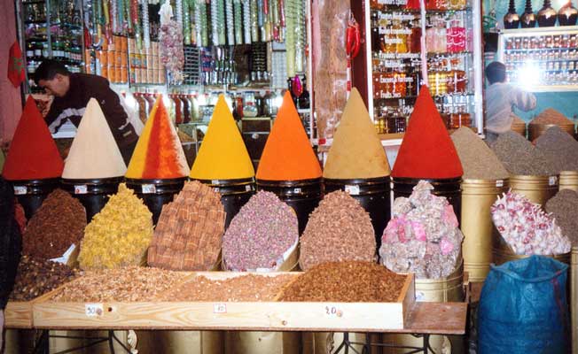 There are also plenty of little cheap restaurants selling the Moroccan staple - tajine - basically a rather dry stew - often with raisins or prunes - and always very tasty. The name itself comes from the dish it is cooked and served in - a shallow porcelain bowl with a conical top.