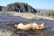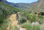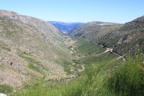 After rather a rough night on the cold hard earth we emerged from the tent to a glorious day. First up me and the hairy one indulged in a bit of geocaching, hiding a cache just above the campsite. This was at the start of a walk which took us over a nearby hill and then around and to the bottom of the glacial valley (Vale de Zezere). There was a map at the entrance to the campsite which said it would take about 2 hours. However, someone had obviously had moved the track as it ended up being a three hour slog under a boiling sun. I can certainly say that getting our feet in that cool mountain stream at the end was just heaven!