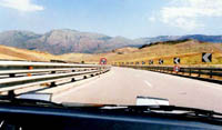 I knew it was quite mountainous in the centre of Sicily but I wasn’t prepared for the isolation. This isolation was exacerbated by the fact the aurostrada was actually a huge 20th century viaduct crossing the country fifty feet above the earth and with few exits enabling us to explore the countryside. It also managed to avoid any pockets of habitation at all. We did skirt the small hilltop town of Enna with its buildings perched precariously on the side of a cliff. Near here we had lunch at a Motorway service station. No greasy fry up or Happy Eater, but Palma ham on the freshest and crustiest bread.